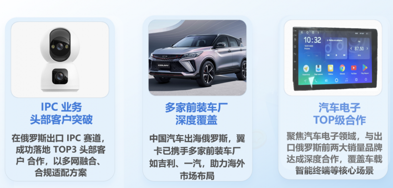客户验证,案例标杆:解决方案已获多家头部客户验证,在IPC领域服务俄罗斯出口额前三客户,在汽车领域与吉利、长安、一汽、重汽等主流车企深度合作,具备15年物联网连接与200多国服务经验。